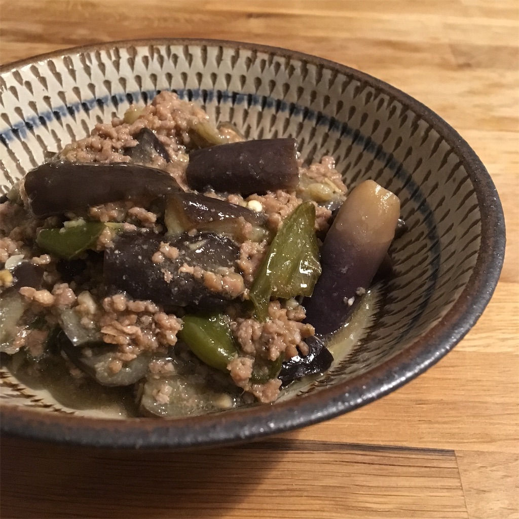 なすと豚ひき肉の味噌炒め